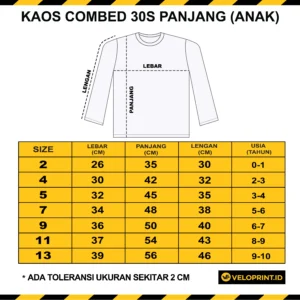 Kaos Anak Lengan Panjang Katun Combed 30s